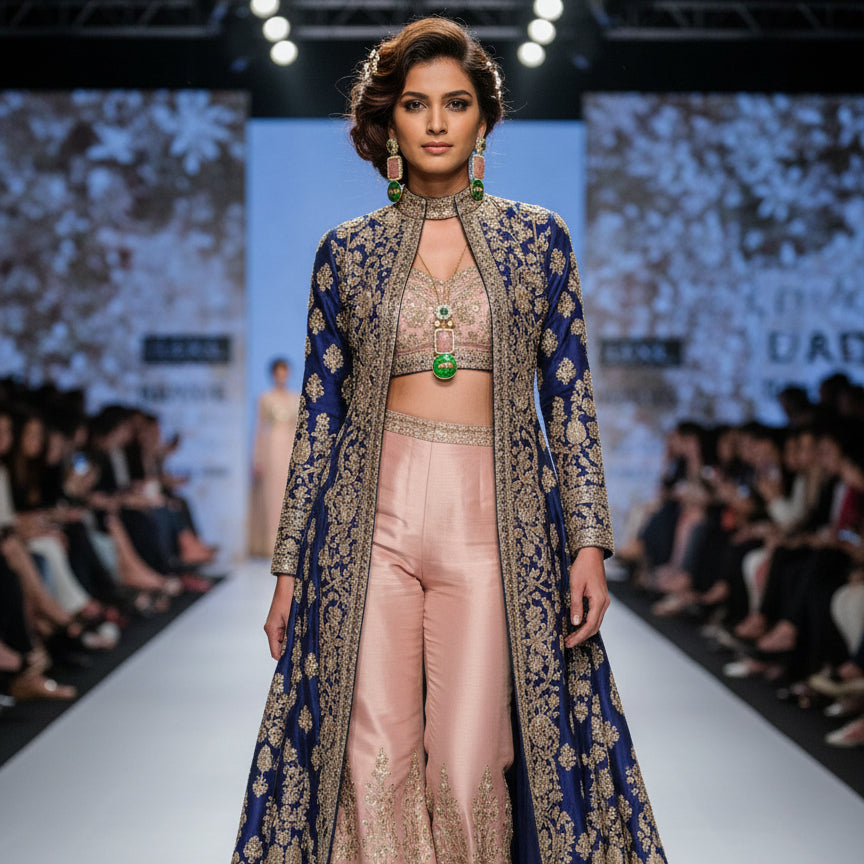 Pair this set with a solid-colour kurta, saree, or Indo-western outfit—complete the look with a neat bun or soft curls to highlight the pendant’s enamel detailing.
