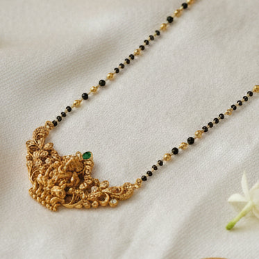 Gold-Toned Finish • Traditional Mangalsutra Design • Black Bead Chain • Ornate Central Motif • Stone Accents • Lightweight & Comfortable